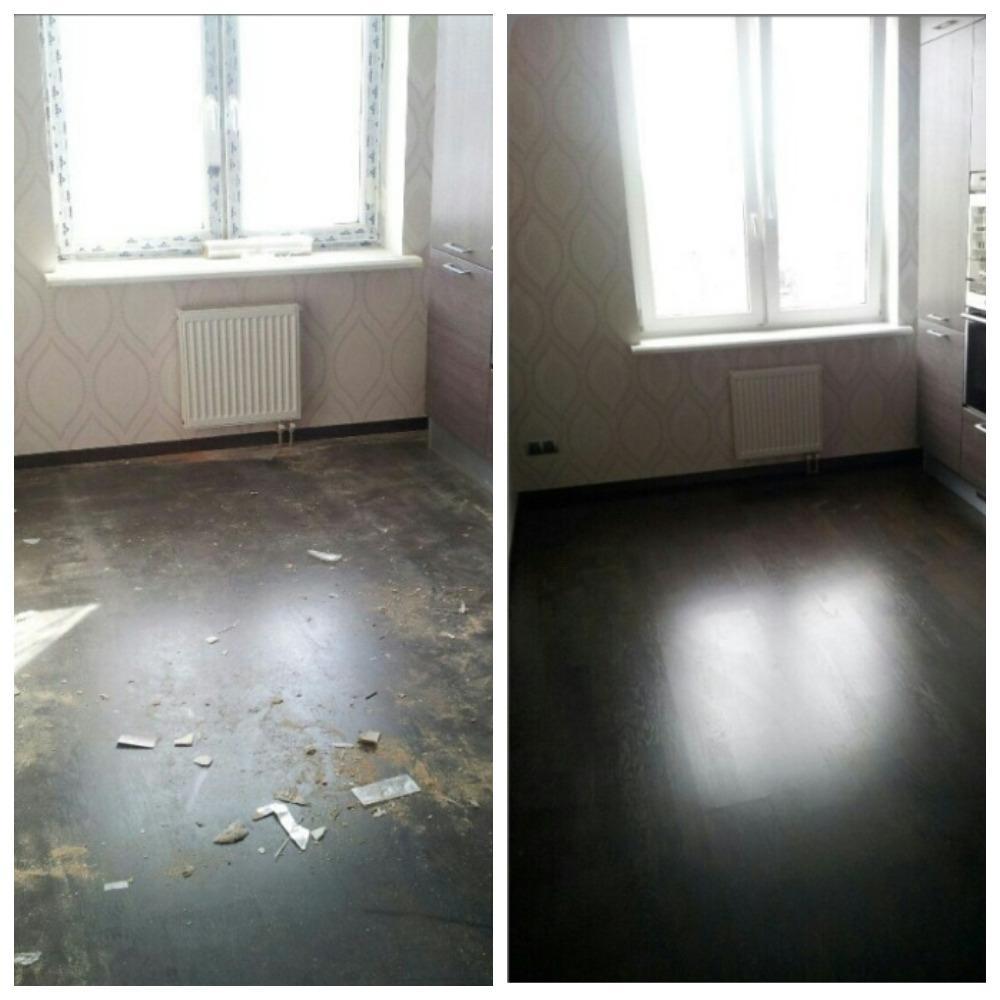 3. Чистка полов и стен: наши специалисты удаляют пятна краски, клея и грязи с поверхностей, возвращая им первозданный вид.